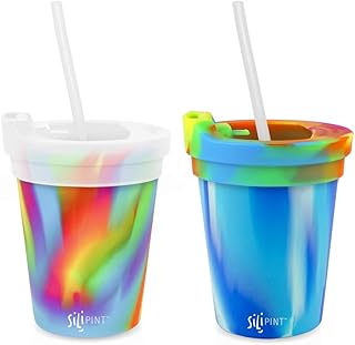 Silipint シリコーン製子供用カップ 米国特許取得済み BPAフリー 壊れない 密閉可能な蓋 シリコン製ストロー付き 車やキャンプ、スポーツ、生活に安全 (2カップ/蓋とストロー) 2-Pack