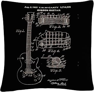 Trademark Fine Art 1955 McCarty Gibson ギター特許 ブラック Claire Doherty作 16x16 装飾スローピロー マルチカラー