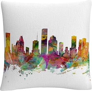 Trademark Fine Art Houston Texas Skyline Michael Tompset作 16x16 装飾用クッション、マルチカラー