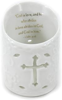 聖なる夜に 陶器製 十字架から見える 灯りが ステキな キャンドルホルダー