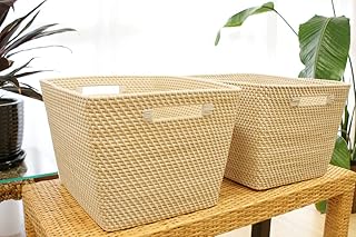 INDRESSME コットン ロープ バスケット | 特大 織り ハンパー バスケット ハンドル付き ナーサリ 保管 ベビー ランドリー バスケット ロープ 収納 ビン オーガナイザー トイ用 ピロー 20"D x 13"H XXXL サイズ メレ
