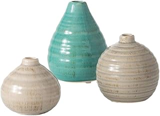 Sullivans 小さなモダンな農家装飾セラミック花瓶セット (3) 素朴な高さ5.75インチ 高さ3.75インチ 高さ3.75インチ ブルーとグレーの花瓶セット 農家の装飾、結婚式のセンターピース、新築祝いギフトの装飾に