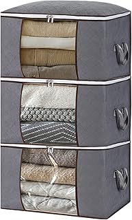 Digitek 収納ボックス 衣類収納ケース 布団収納袋 布団収納ケース衣類整理袋 衣装ケース 透明ビニール補強 布団 毛布 衣類収納 活性炭シート入り 不織布製 持ち手付 湿気防止 通気性が良い 軽い 防カビ (衣類+ふとん両用) (タイプ1-グレー 3個)