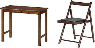 不二貿易 デスク 幅90cm ミディアムブラウン 木製 マンチェスター 95784 & 折りたたみチェア ミディアムブラウン 木製 ミラン 95783【セット買い】