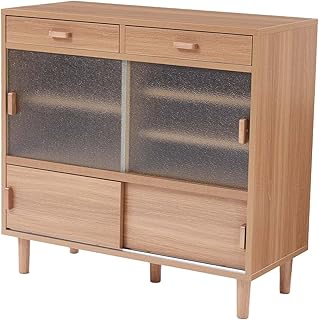 Ansley&HosHo 食器棚 キッチンカウンター キッチン収納 キャビネット カラーボックス キッチンボード 両開き 扉付き 引き出し 幅120㎝ 木目調 ナチュラル& ウォールナット