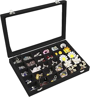 Wudygirl クリア蓋 30グリッド ジュエリーオーガナイザー トレイ 積み重ね可能 ジュエリー収納ケース ディスプレイリング イヤリング ネックレス ブラックベルベット (30グリッド)