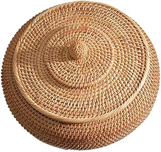 Jroyseter 蓋付きラタンボックス ハンドメイド 織物 ストレージバスケット 食品ストレージ ラウンドボウル オーガナイザー コンテナ フルーツ、野菜、パン、ホームデコレーション用