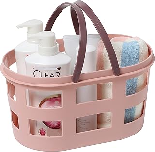 ポータブルシャワーキャディバスケット トートプラスチックオーガナイザー ストレージバスケット ハンドル付き シャワーキャディビン オーガナイザー 大学寮 バスルーム キッチン用 (ピンク)