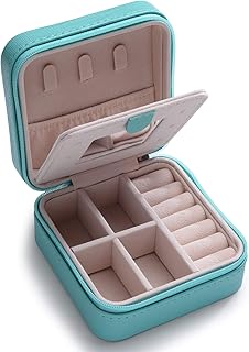 Sylanfia ミニジュエリーボックス レディース 小さなジュエリーオーガナイザー 女の子用 旅行ジュエリーケース ダブルレイヤー グリーンジュエルキャビネット ギフトケース ミラー付き 2.95インチ x 2.95インチ