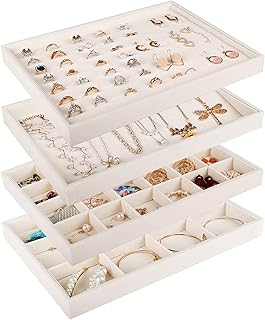 Mebbay 積み重ね可能なベルベットジュエリートレイ オーガナイザー ジュエリーストレージディスプレイ 引き出し用 イヤリングネックレス ブレスレット リングオーガナイザー 4個セット (ウォームホワイト) 13.8インチ x 9.5インチ x 1.2インチ