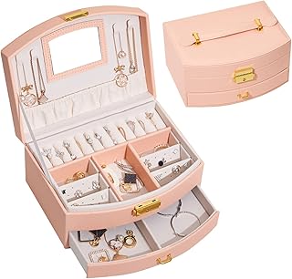 ジュエリーボックス ジュエリー収納 アクセサリーケース 女の子 女性 人気 2層 鏡付き 大容量の宝石箱 小物入れ ピアス ネックレス 指輪 イヤリング収納 母の日、クリスマス、結婚式の日、誕生日プレゼント用(ピンク)