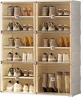 【Amazon限定ブランド】DestarBox シューズボックス 靴箱 下駄箱 クリア 組立不要 折り畳み 靴収納 スリム 省スペ ース 大容量 PP材質 積み重ね可能 防塵 防湿 玄関 オフィス 幅53 x 奥行34 x 高さ99cm (2列12段)