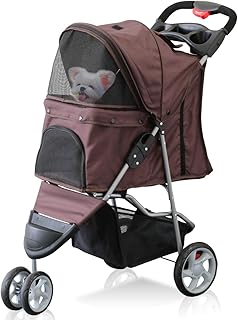 ottostyle.jp 折りたたみ ペットカート 3輪 【ダークブラウン】 軽量 ワンタッチ 安全装置付 ドッグカート キャリー 小型犬 中型犬 老犬 多頭 介護用