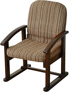 山善 高座椅子 レバー式 リクライニング(背もたれ) 高脚 ハイバック 立ち座りがラク 高さ調節可能 腰にフィットする背もたれ ポケット付き 組立品 ストライプ/ダークブラウン WLZ-55(VS1)*