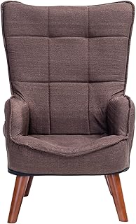 LAZY DIARY ソファー1人掛け 高座椅子 ハイバック カウチ コンパクト肘掛け 木脚 布 おしゃれ ダークブラウン