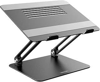 Zeshbit ノートパソコンスタンド ノートpc スタンド ラップトップスタンド タブレットスタンド iPadスタンド 人間工学設計 無段階高さ調整可能 姿勢改善 腰痛 猫背解消 折りたたみ式 滑り止め アルミ合金製 放熱性 軽量 Macbook Air/Macbook Pro/iPad Pro/Notebooks/液タプなど17インチまでに対応 在宅勤務 オンライン授業 (グレー)